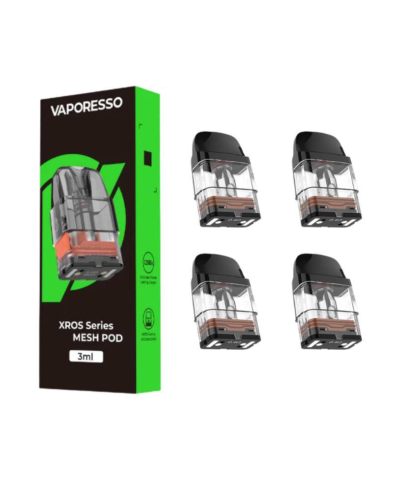 Fabriqué par Vaporesso, le pack de 4 cartouches Xros 4 se destine aux pods Xros, Xros 4 Mini et Xros 4 PRO. Ces réservoirs d'une contenance de 3 ml sont des cartouches jetables qui se remplissent par le haut, un système qui évite les fuites. Chaque cartouche est équipée d'une résistance intégrée non remplaçable.